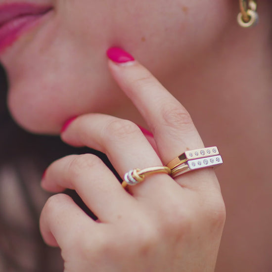 Part of our Architect Collection. The Beam Ring Set includes two identical stacking rings, one in silver and one in gold to give you the perfect start to a mixed metal ring stack. Both rings feature a flat top and five graduated round-cut cubic zirconia stones. Wear them together for symmetry, or stacked with our Mixed Metal Stack Bundle to complete the mixed-metal look.